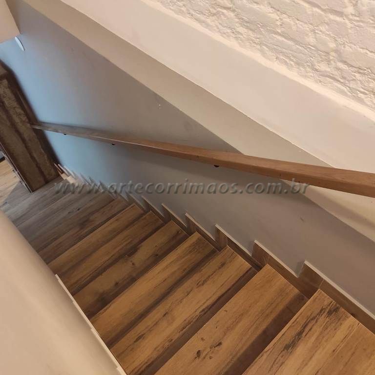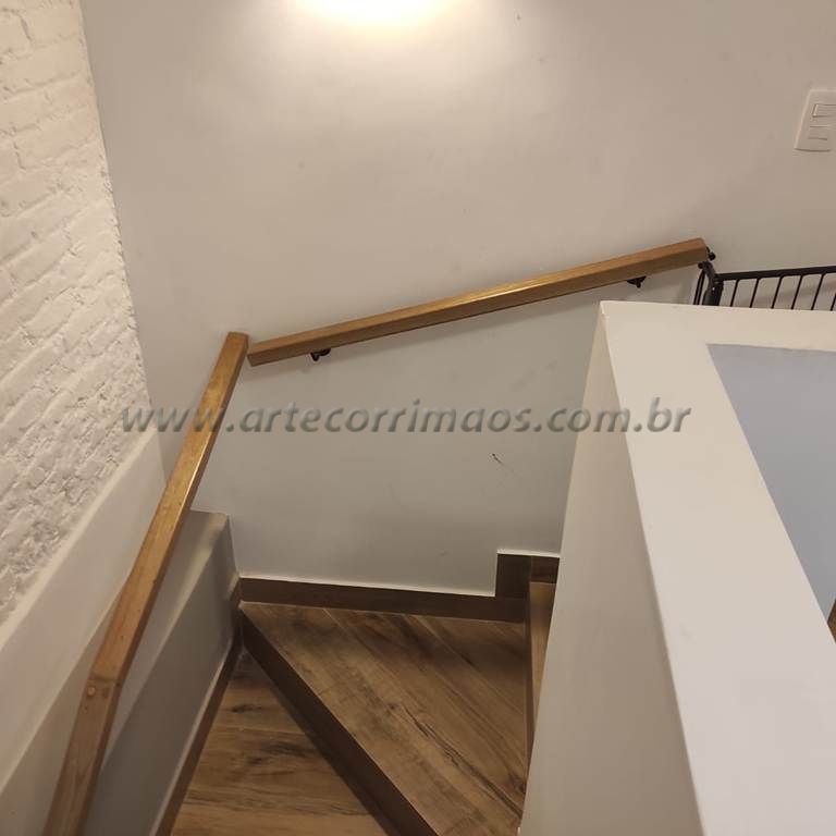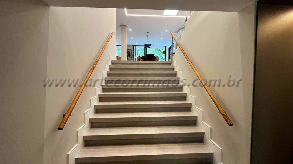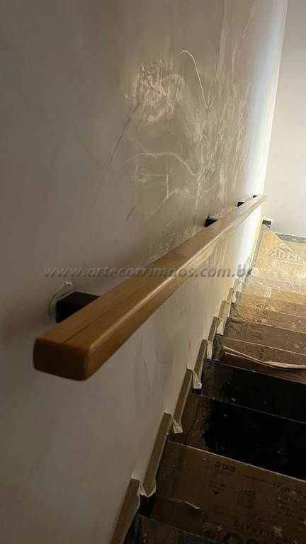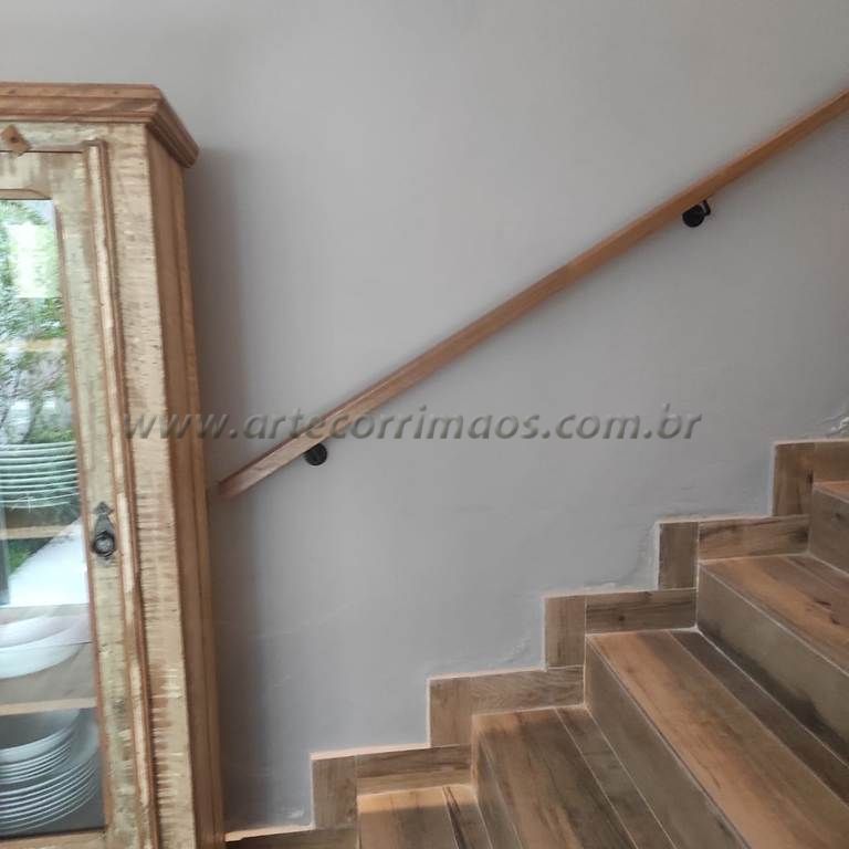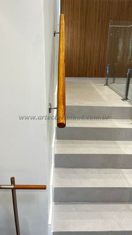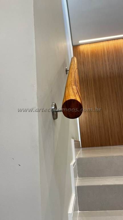 O equilíbrio perfeito entre o rústico e o contemporâneo. O corrimão de madeira oferece conforto térmico e ergonomia no toque, enquanto os suportes em aço inox garantem a fixação robusta e o brilho metálico que não escurece com o tempo.