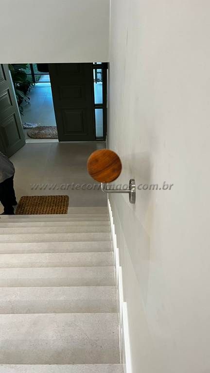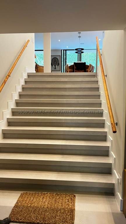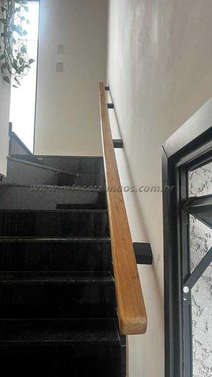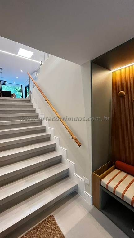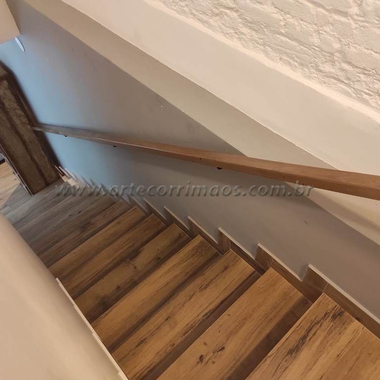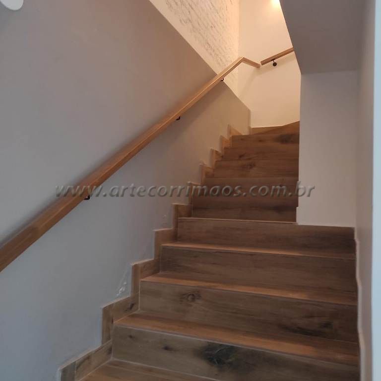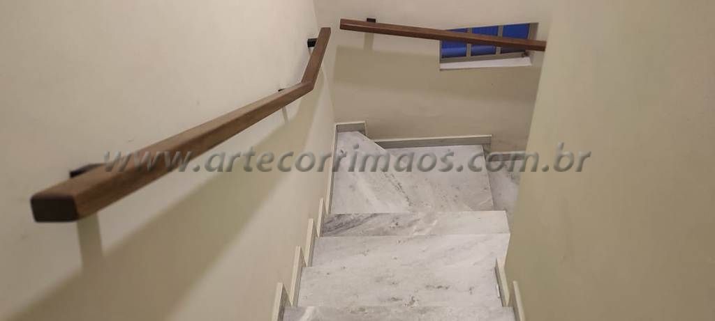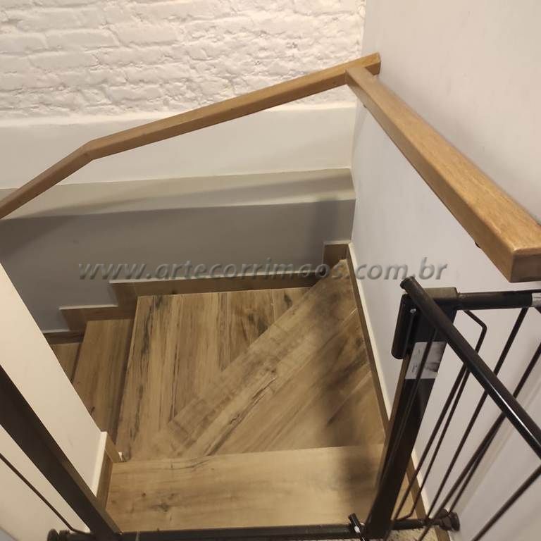 O equilíbrio perfeito entre o rústico e o contemporâneo. O corrimão de madeira oferece conforto térmico e ergonomia no toque, enquanto os suportes em aço inox garantem a fixação robusta e o brilho metálico que não escurece com o tempo.